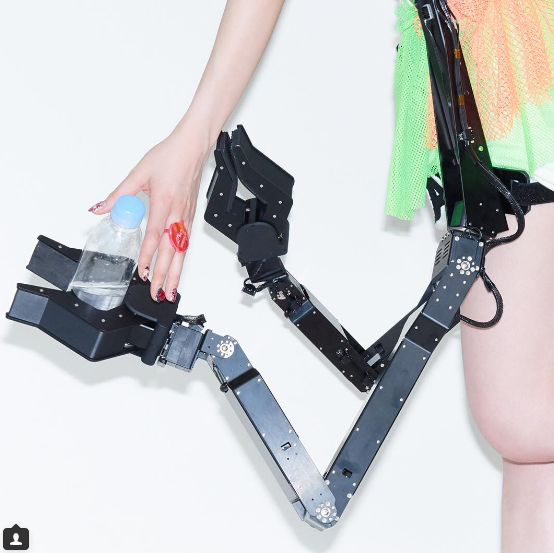 Most egy új, igazán látványos ötletet valósítottak meg: ez a robotkar, mely a szoknya alól bukkan elő és igen praktikus is tud lenni. Megfogja a mobiltelefont, az üdítőt, segít felvenni dolgokat.